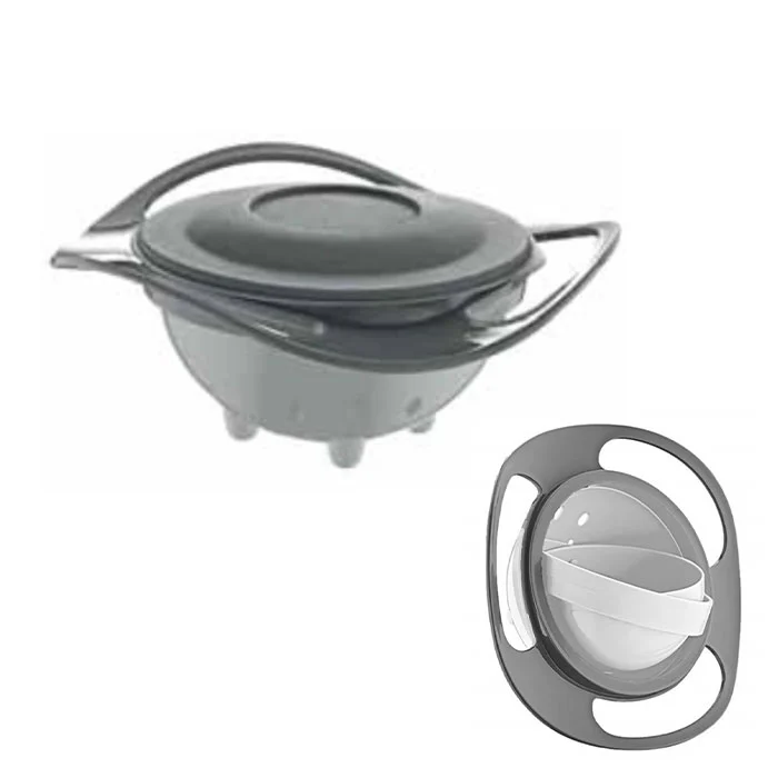 Babyjem činija za hranjenje Grey ima dizajn koji se okreće za 360 stepeni tako da hrana vaše bebe se ne može prosuti.Zahvaljujući jarkim bojama, pažnja vaše bebe je usmerena na tanjir sa hranom.Ima poklopac, može se koristiti kao kontejner za skladištenje zatvaranjem poklopca činije.