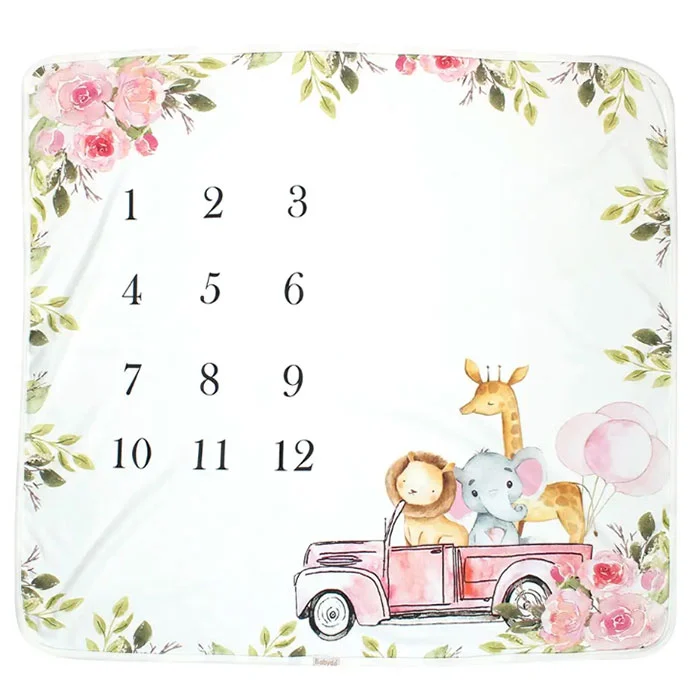 Bebekevi podloga za slikanje Pink je podloga za fotografisanje sa veselim dezenom koja prati rast bebe od prvog dana pa sve do proslave prvog rođendana!
