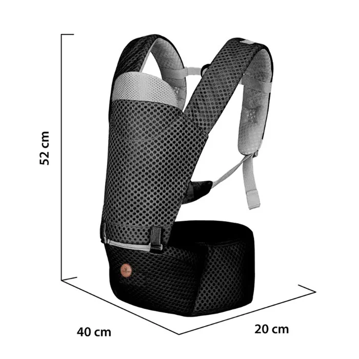 Cangaroo kengur nosiljka Mistral black ergonomska nosiljka sa bazom posebno je dizajnirana da pruži udobnost i bebi i roditeljima. Pogodna je za decu uzrasta od 5+ meseci do 15 kg. Omogućava nošenje deteta u 5 položaja i obezbeđuje pravilan način nošenja, jer su noge deteta u pravilnom M položaju tokom nošenja. Baza ima neklizajuću površinu i dodatno je podstavljena a može se korostiti i samostalno.