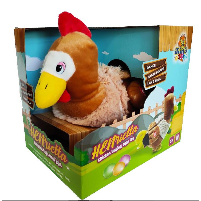 - Interaktivna igračka koka Henrietta pritiskom na taster peva i igra, a uz to polaže i 3 plastična jajeta