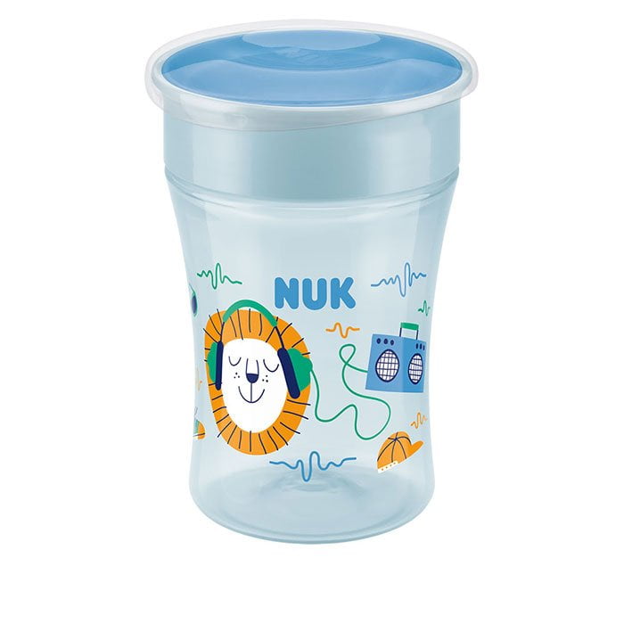 Nuk šolja za učenje Magic Lion, ima rub od 360 stepeni i pomaže detetu da samostalno savlada pijenje bez prolivanja tečnosti.